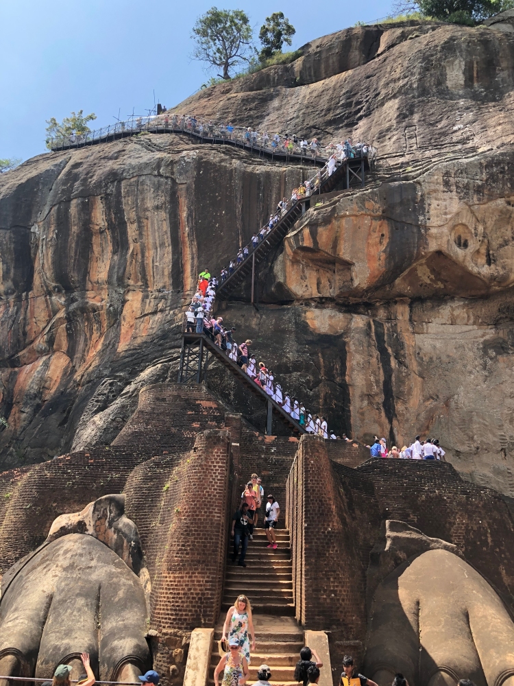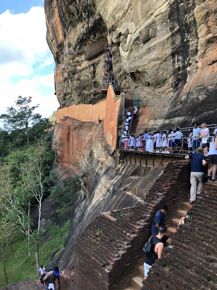 Hier bezoeken we een enorme rots Sigiriya die loodrecht uit het landschap oprijst. Aan de noordzijde van de rots bereikt men halverwege de steile beklimming via trappen de Spiegelwand. Hierop zijn fresco’s afgebeeld van ‘wolkenmaagden’.