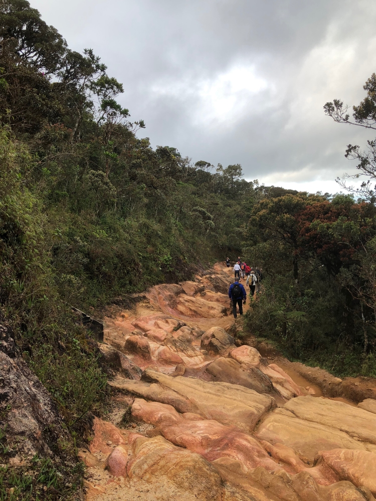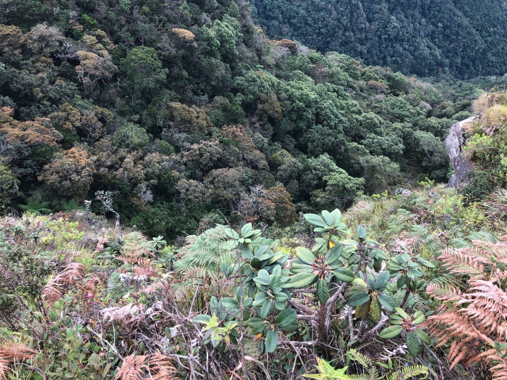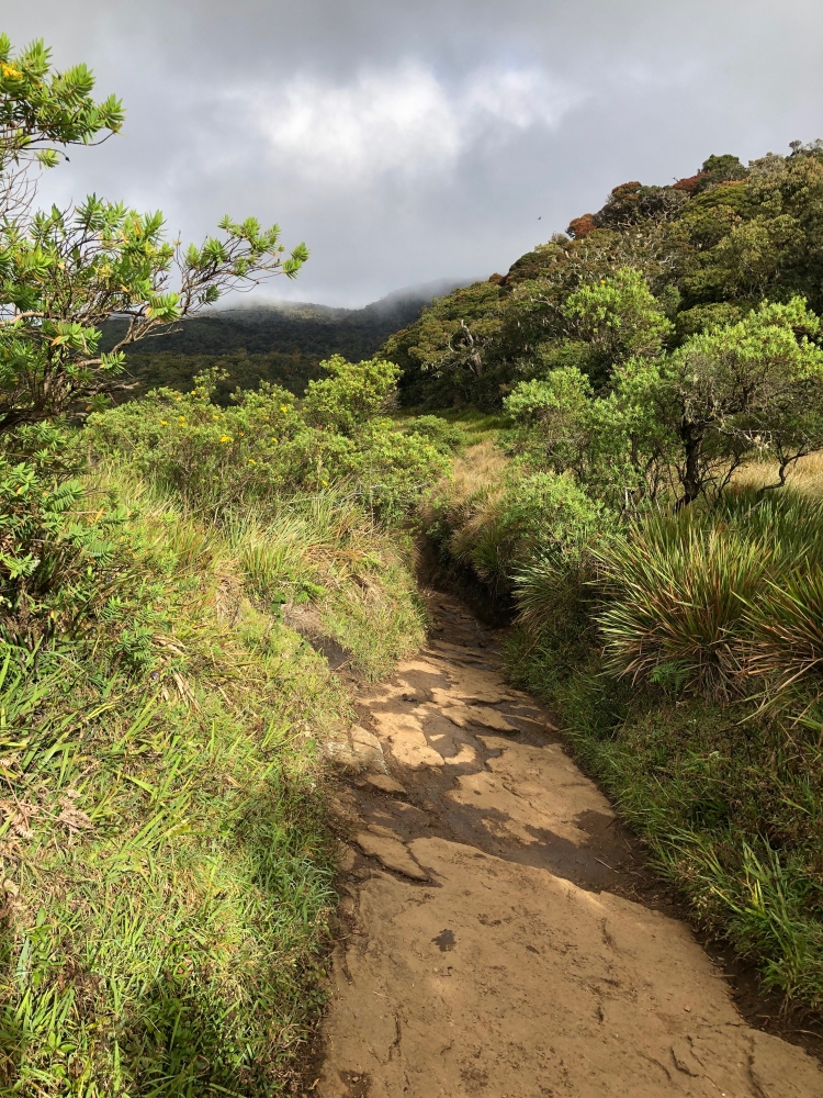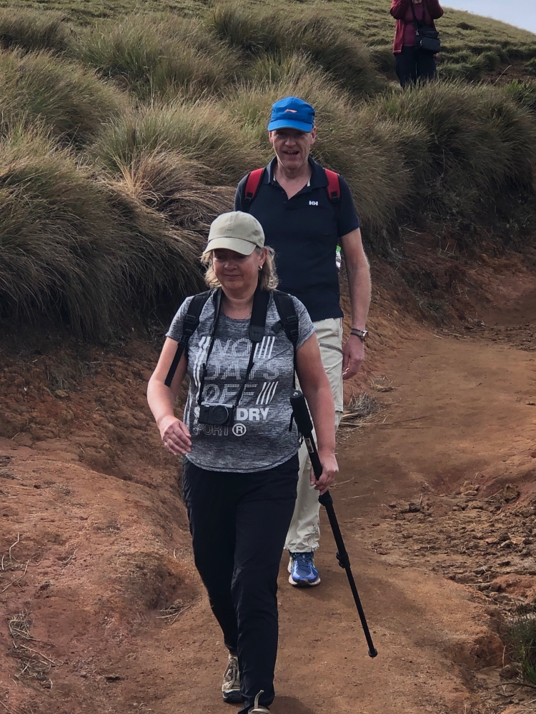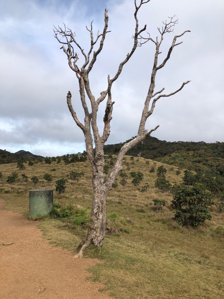 Om 5 uur vertrokken naar het Horton Plains National Park, waar we om 6.45 van start gingen in een enigszins koude omgeving naar “Het einde van de wereld”. Een toch wel inspannende, 4 uur durende, wandeling met stukjes klimmen en dalen. De warme kleding kon gaandeweg na opkomst van de zon uitgetrokken worden omdat het gewoon warm werd. Had het enigszins geregend, dan zou het koud gebleven zijn.