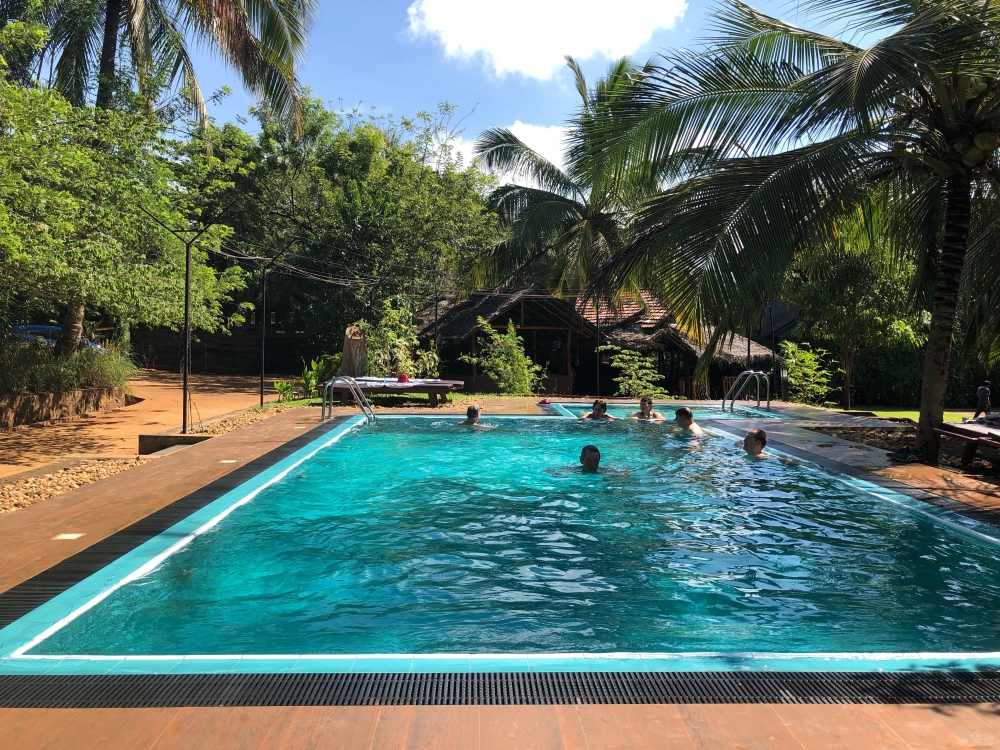 Rustig ontbijten om 8 uur. Daarna een beetje tijd gekregen om rond het zwembad te hangen en dan op bezoek bij een olifanten ziekenhuis/opvang om het voederen te bekijken.