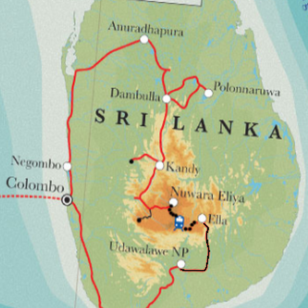 Vanuit Nuwara Eliya (Nanu Oya Station) rijden we met de trein het centrale berggebied uit, omlaag naar Ella. Vanuit Ella gaan we met de bus verder. We verblijven vlak bij het indrukwekkende Udawalawe Nationaal Park in een tent met eigen sanitair: kamperen midden in de prachtige natuur.