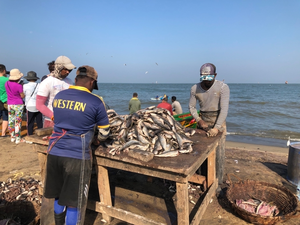 Voor we naar de voormalige koningsstad Anuradhapura rijden bezoeken we eerst de vismarkt van Negombo.